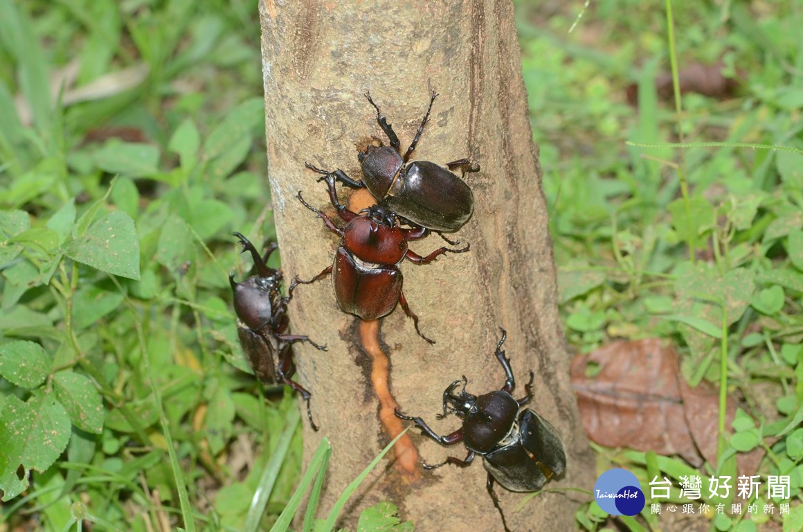 東勢林場中已經可以看到獨角仙等昆蟲出沒,場方推出系列活動與優惠方案。(記者黃玿琮攝)