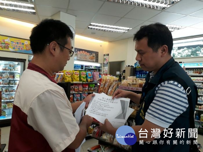 稽查員向店家宣導限制塑膠微粒之環保政策