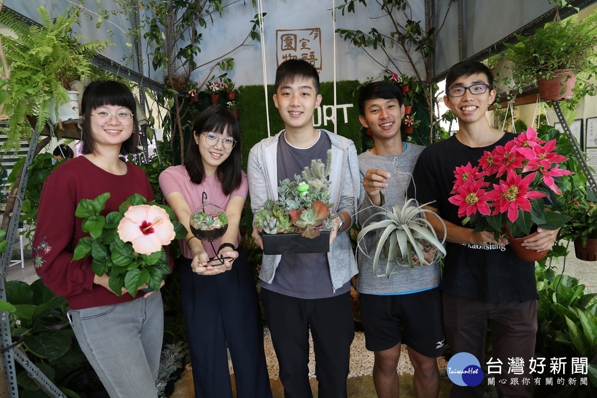 此次展示及開放選購的植物種類多元,包含香草、多肉、食蟲、 蘭花、空氣鳳梨、觀葉植物等, 並有專人介紹各個植物的特性及照顧方式。另有DIY體驗區, 可動手製作多肉組盆及押花鑰匙圈,並有學生自製的研習產品, 果乾、果醬、酥皮等可選購。