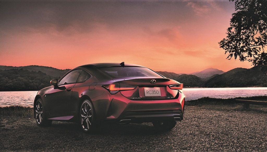 全新的RC外觀,包括全新縱向排列LED頭燈與L-shaped LED日間行車燈、L-shaped LED尾燈,搭配流暢動感的前後保桿線條與全新設計的紡錘形水箱護罩,讓全新RC除了保有雙門跑車的性感外型,更增添了優雅氣質。F SPORT車型搭載了專屬網格水箱護罩及19吋十幅鋁圈,將新RC的運動天性展現得淋漓盡致。