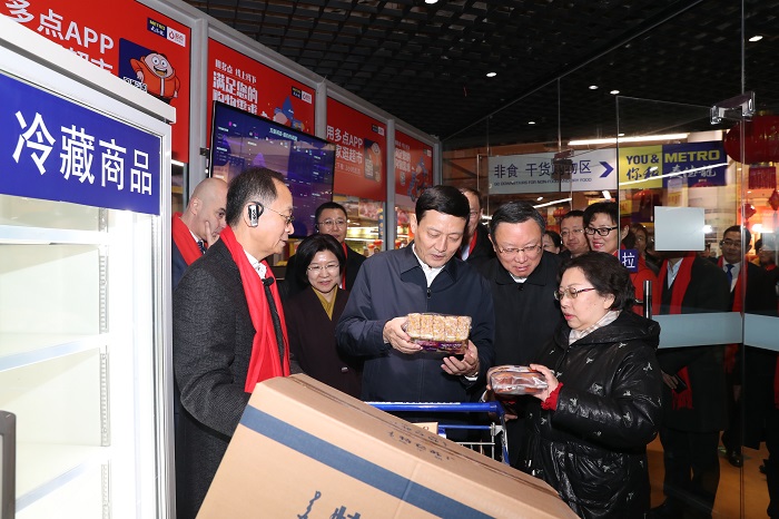 肖亞慶先後檢查了北京物美麥德龍萬泉河商場、中關村食寶街部分餐飲店、四道口水產批發市場,聽取了超市和市場關於食品安全風險防控、產品終端冷鏈銷售、追溯體系建設等情況的介紹,並現場查看了商超食品安全追溯系統、餐飲單位“明廚亮灶”的建設情況,詳細了解春節期間節令食品,特別是肉類、水產等食品的質量安全監管工作情況和保供應穩價格的落實情況。