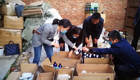 衡水市市場監管局執法人員在排查中發現,淘寶網平台上一個店鋪,銷售的產品是標籤上僅有品名的“三無”產品,通過對該店鋪產品信息認真研判及對其微信公眾號所显示的信息綜合分析,發現其存在無證制售化妝品違法行為的嫌疑。執法人員立即行動,前往該網店經營者營業執照信息所显示的註冊地址饒陽縣某村開展調查,發現該註冊地址無實際經營行為。據周圍村民介紹,該店法人為該村村民,目前可能在衡水市區從事化妝品經營,衡水市市場監管局积極同市公安局溝通,通過共同努力,基本鎖定該店在衡水市區的制售窩點,執法人員現場對其生產原料、成品、包裝材料、加工設備、用於網上銷售產品的電腦進行查扣。