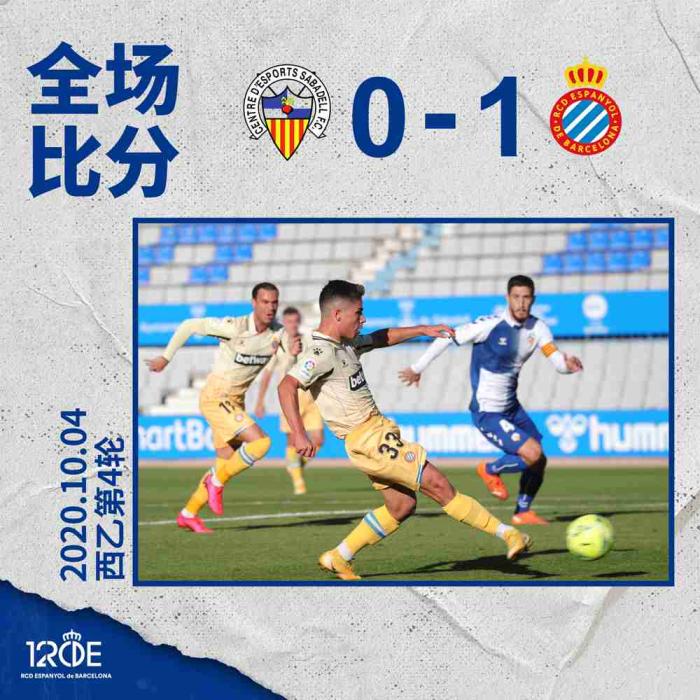 最終全場比賽結束,西班牙人客場1:0小勝薩瓦德爾。四輪過後,西班牙人三勝一平排名西乙第二。(完)