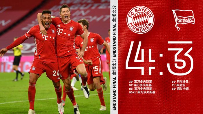 在比賽中,萊萬在第40分鐘和第51分鐘的兩粒進球幫助拜仁取得2:0領先,但柏林赫塔頑強將比分扳平。第85分鐘,萊萬禁區內推射破門,但僅3分鐘后柏林赫塔就再次將比分扳平。比賽最後時刻,萊萬點球絕殺,拜仁4:3戰勝柏林赫塔。