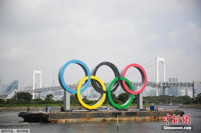 - 資料圖:當地時間8月6日,日本東京御台場海濱公園的巨型奧運五環暫時被拆除回廠進行維修。