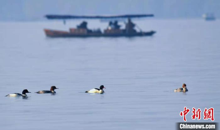 中新網杭州12月18日電 (江楊燁)12月18日,記者了解到,冬候鳥普通秋沙鴨已抵達浙江杭州西湖。至此,西湖邊的四大冬候鳥均已在西湖集結。天氣晴好的日子,杭州西湖斷橋上,會有一排駕着“長槍短炮”的鳥友,冬候鳥和鳥友愛好者“相映成趣”。