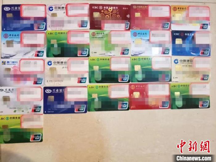 圖為警方收繳的銀行卡 蔡俊 攝