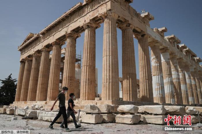 資料圖:當地時間5月18日,希臘雅典,雅典衛城向公眾開放,吸引遊客參觀,當天希臘露天考古遺址和各類主題公園當天起恢復開放。