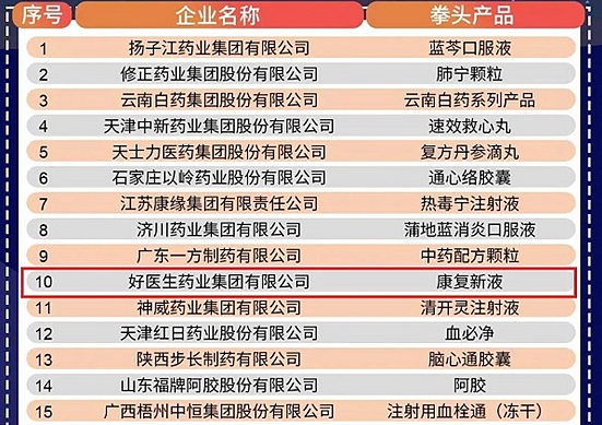 近日,全國工商聯醫藥業商會發布“2019年度中華民族醫藥百強品牌企業”榜單。醫藥業商會經過近半年的搜集整理,在眾多參評企業中甄選出百強品牌, 好醫生集團以其品牌產品“康復新液”榮耀登榜,位列第十。